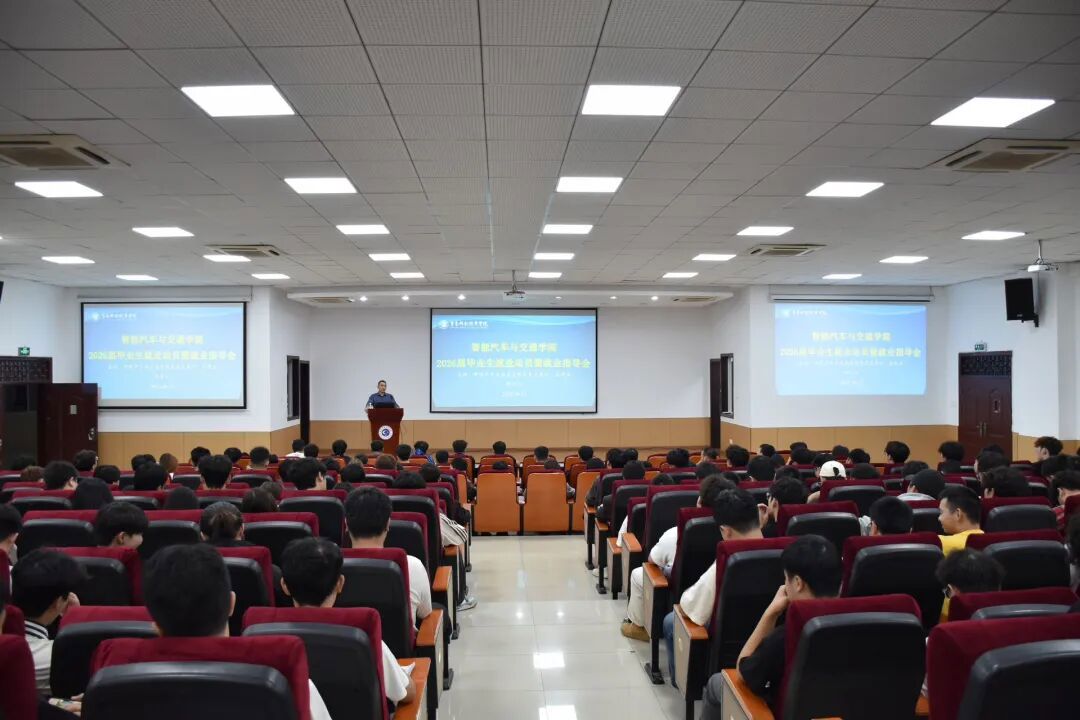 为扎实推进2026届毕业生就业工作,引导毕业生准确把握就业形势、明确职业目标,智能汽车与交通学院于10月10日至12日,在理工楼807学术报告厅分批次召开了2026届毕业生就业动员暨就业指导会。党总支书记柳良江主讲。