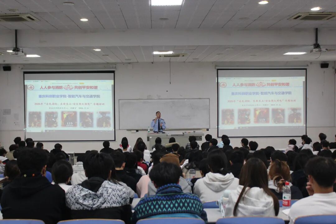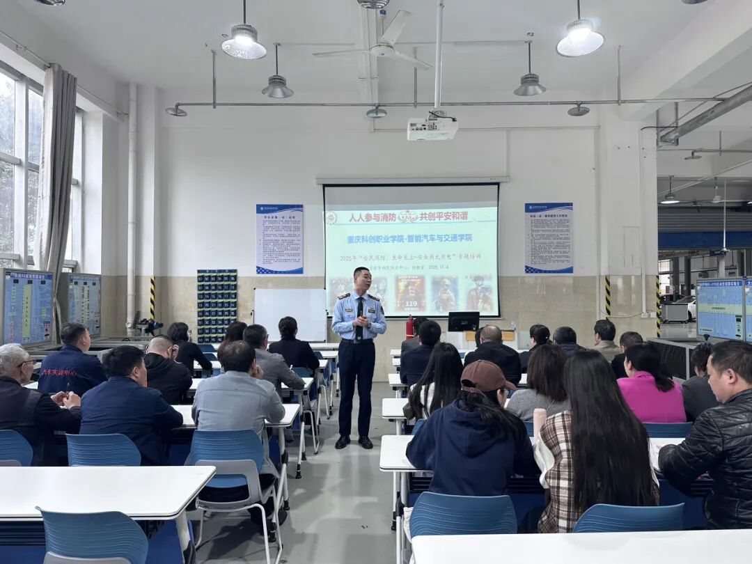 为进一步树牢全体师生消防安全意识,普及消防安全知识,全面提升应对突发火灾事件的快速反应与科学处置能力,切实保障师生生命财产安全和校园和谐稳定,11月4日,智能汽车与交通学院特邀重庆市利民防火中心刘教官,为学院师生带来一场集“知识普及”与“实战演练”于一体的“全民消防 生命至上——安全用火用电”专题培训。