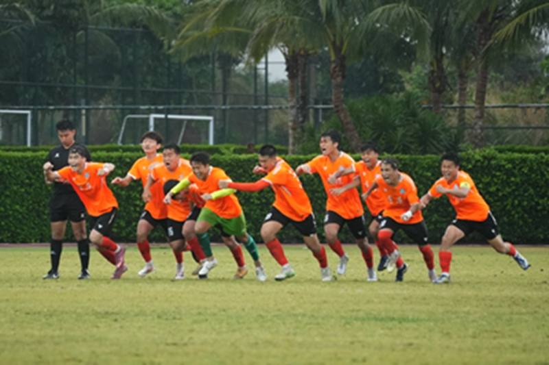 残酷的点球大战随即展开,双方队员顶着巨大压力依次站上点球点。前几轮,两队球员均稳稳命中;最后一球的关键时刻,对手点球被我方门将精准判断扑出,比赛一锤定音!5:4!科创职院最终赢得这场终极对决,成功登顶全国之巅!教练组与替补球员们瞬间冲入场地,与精疲力竭的场上队员紧紧相拥,欢呼声与呐喊声响彻海口观澜湖的上空。