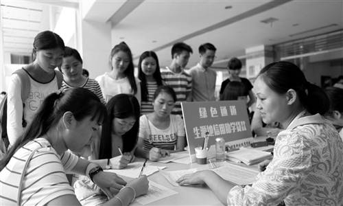 重庆科创职业学院开辟“绿色通道”,搭建起包括缓缴学费、国家助学贷款、勤工助学、学费减免、临时困难补助等在内的助困体系,不让一名新生因家庭经济困难原因而辍学。图为8月28日,申请补助的学生在填写相关表格。