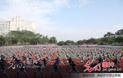 阅兵仪式上,经过为期15天军训的数千名新生在烈日骄阳中,进行了分列式、男子军体拳、女兵方队手语操等表演。新生们步伐整齐、口号嘹亮、精神饱满,动作娴熟灵活,眼神坚毅有力,构成了校园里最亮丽的风景线。同时,还表彰了先进连队、优秀教官、优秀军训工作者等。