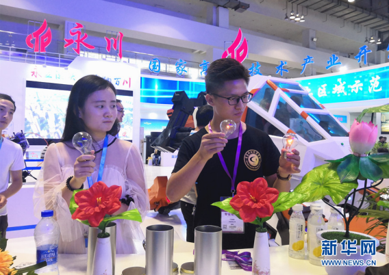 新华网重庆6月22日电(葛琦)6月21日,第十三届重庆高交会暨第九届国际军博会在重庆南坪国际会展中心拉开帷幕。重庆永川国家高新区22家高新技术企业、76个展品参展,除了机器人、智能机床、3D打印等永川“智”造,现实版“变形金刚”、一个手势点亮灯泡的“科技魔术”等也逐一亮相。