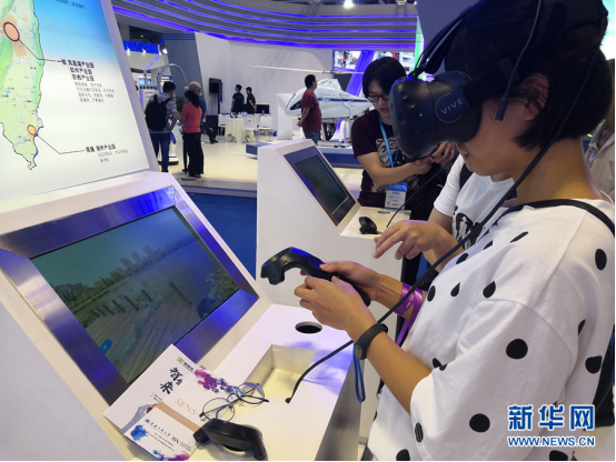 展会现场,市民正在通过VR设备游览永川美景。新华网 葛琦 摄