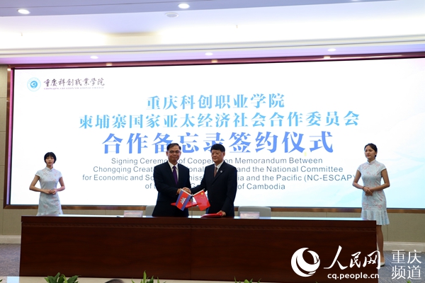 柬埔寨国家亚太经济社会合作委员会与重庆科创职业学院签署合作备忘录。重庆科创职业学院 供图