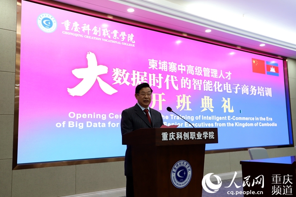 人民网重庆6月3日电 5月30日,由重庆科创职业学院主办,柬埔寨王国亚太经济社会合作委员会协办的柬埔寨中高级管理人才大数据时代的智能化电子商务培训开班典礼在重庆科创职业学院举行。来自柬埔寨的18名学员将在学校进行为期二十天的培训。