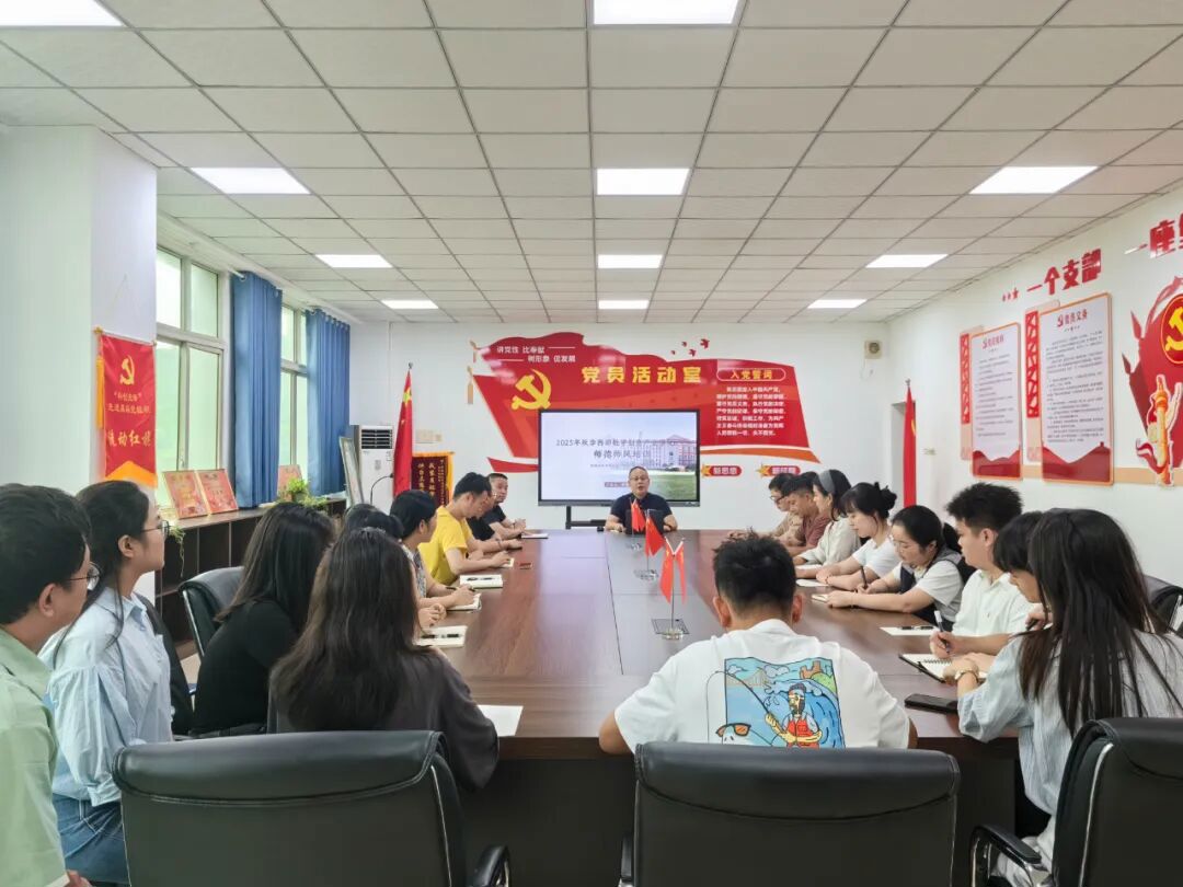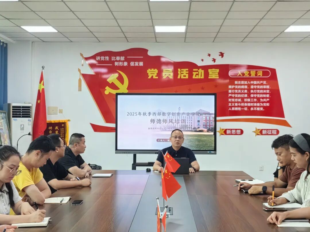 在第41个教师节来临之际,为进一步加强师德师风建设,弘扬高尚师德,9月9日下午,西部数字创意产业学院在学院会议室组织召开2025年秋季师德师风专题培训会。培训由学院党支部书记兼副院长赵伟主讲,全体教职工参加。