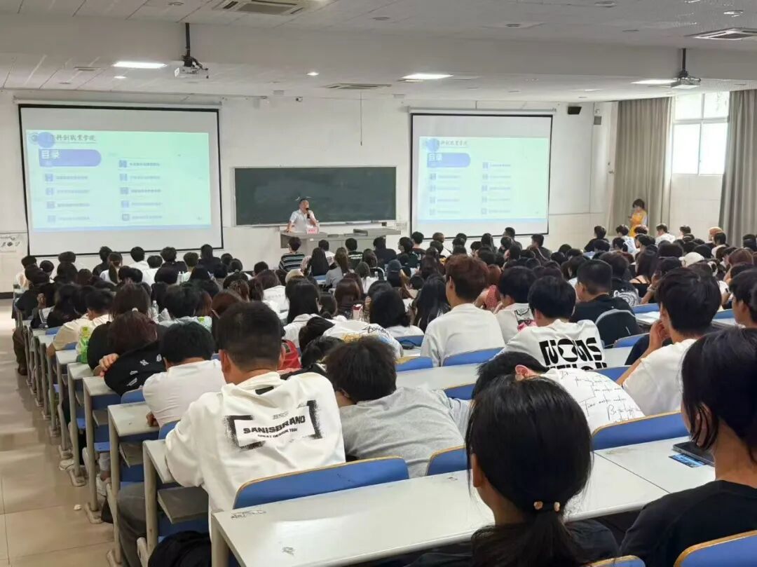 为迎接第41个教师来临之际,9月10下午在明远楼302阶梯教室,我院院长杜德银为帮助 2025 级新生快速了解学院、明确发展方向,以 “定义‘为’来” 为主题,为新生们带来了一堂生动的入学教育讲座,系统解读学院发展规划与人才培养体系,为新生开启大学征程奠定基础。