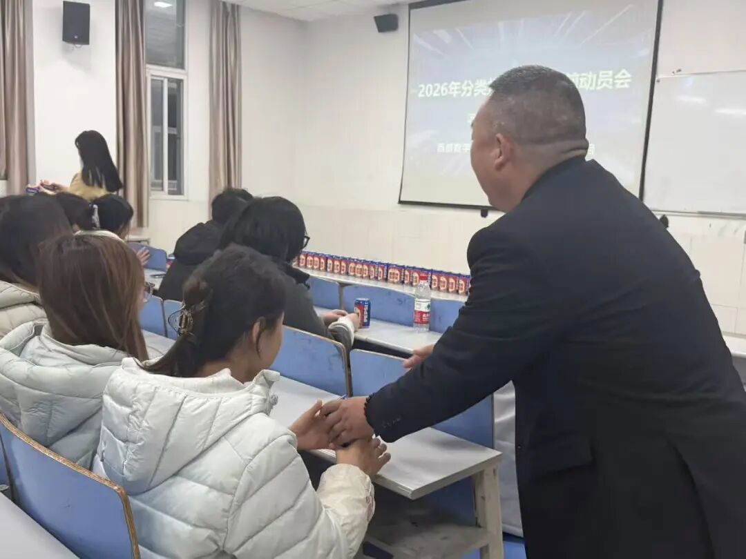 动员大会尾声,学院为每位参会学生准备了定制版百事可乐,寓意"百事顺利""心想事成",寄托着对学子们在考试中收获成功与喜悦的深切祝愿。当一瓶瓶承载祝福的可乐发放到同学们手中时,现场响起阵阵欢呼与掌声。