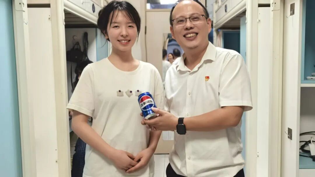 交流过后,慰问小组为每位新生送上象征“百事可乐、快乐开启大学生活”的百事可乐饮品。这份以“快乐”为寓意的贴心礼物,让初入校园的学子们刚踏入宿舍,便感受到如“家”般的温馨与暖意,也为他们崭新的大学生活赋予了“事事顺心、时时快乐”的美好期许。