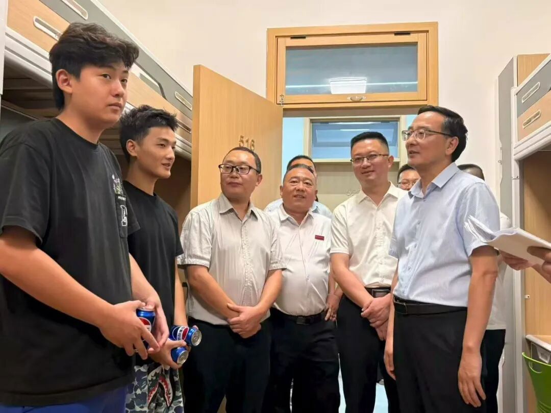 初秋送暖,迎新正当时。9月5日,在2025级新生报到入学的关键节点,为切实掌握新生入住情况、将学院关怀精准传递至每位新生心中,学院院长杜德银、党支部书记兼副院长赵伟、副院长张陵,在校党委书记董刚,副校长殷朝华、滕斌的带领下,与学院各专业负责人、行政办公人员、全体新生辅导员以及学院志愿者组成慰问小组,分头深入新生寝室。