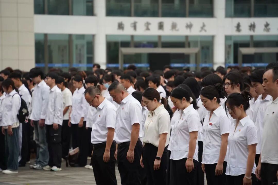 升旗仪式后,现场全体人员肃立默哀三分钟,以此缅怀在抗日战争中英勇牺牲的革命先烈和惨遭日本侵略者迫害的无辜同胞。静默的氛围中,历史的沉重与和平的珍贵深深烙印在每一位师生心中,进一步激发了大家的爱国情怀与历史责任感。