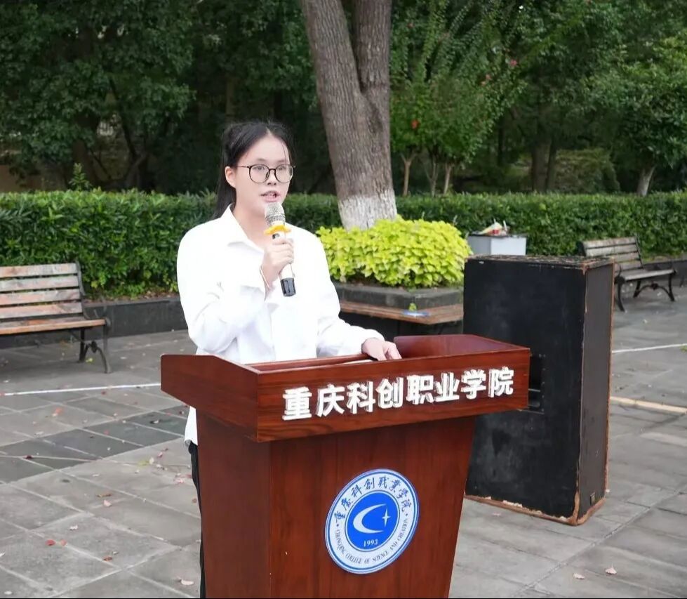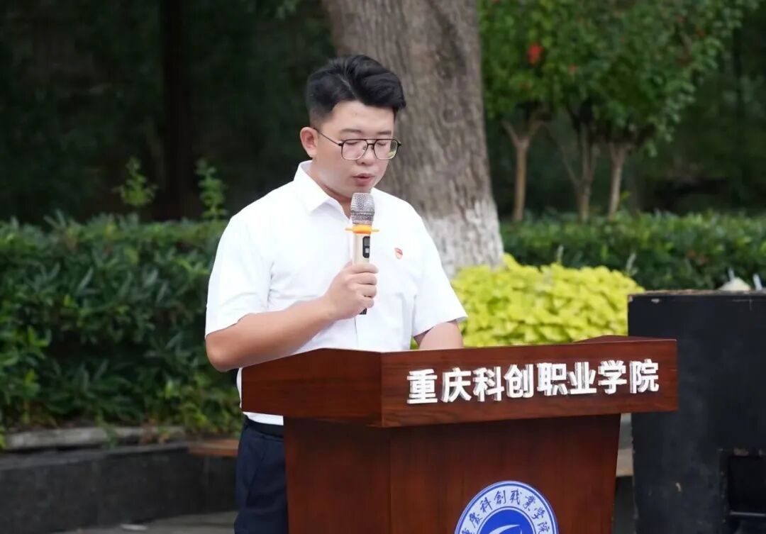 仪式尾声,学院团总支书记张宏炜带领全体师生,庄严齐呼:“铭记历史,吾辈自强!” 激昂的口号声铿锵有力,响彻校园,既饱含着全体师生对革命先烈的深切缅怀,更彰显出新时代青年勇担时代使命的坚定信念与奋进担当。