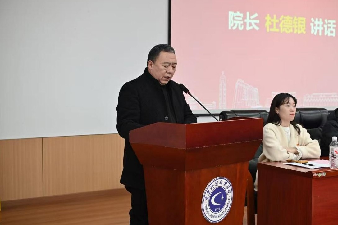 大会第九项议程,西部数字创意产业学院院长 杜德银 总结讲话。杜德银院长在总结讲话中充分肯定了上一届团学干部的工作,指出他们成功搭建起学院与同学间的沟通桥梁,成效显著,获得师生广泛赞誉。同时,他向新一届学生干部提出三点希望:一要筑牢思想根基,做坚定信念、胸怀大局的“领航者”;二要聚焦服务主业,做心系同学、排忧解难的“贴心人”;三要锤炼过硬本领,做严于律己、躬身实干的“实干者”。他号召新一届成员以换届为起点,用实际行动为学院发展贡献青春力量。