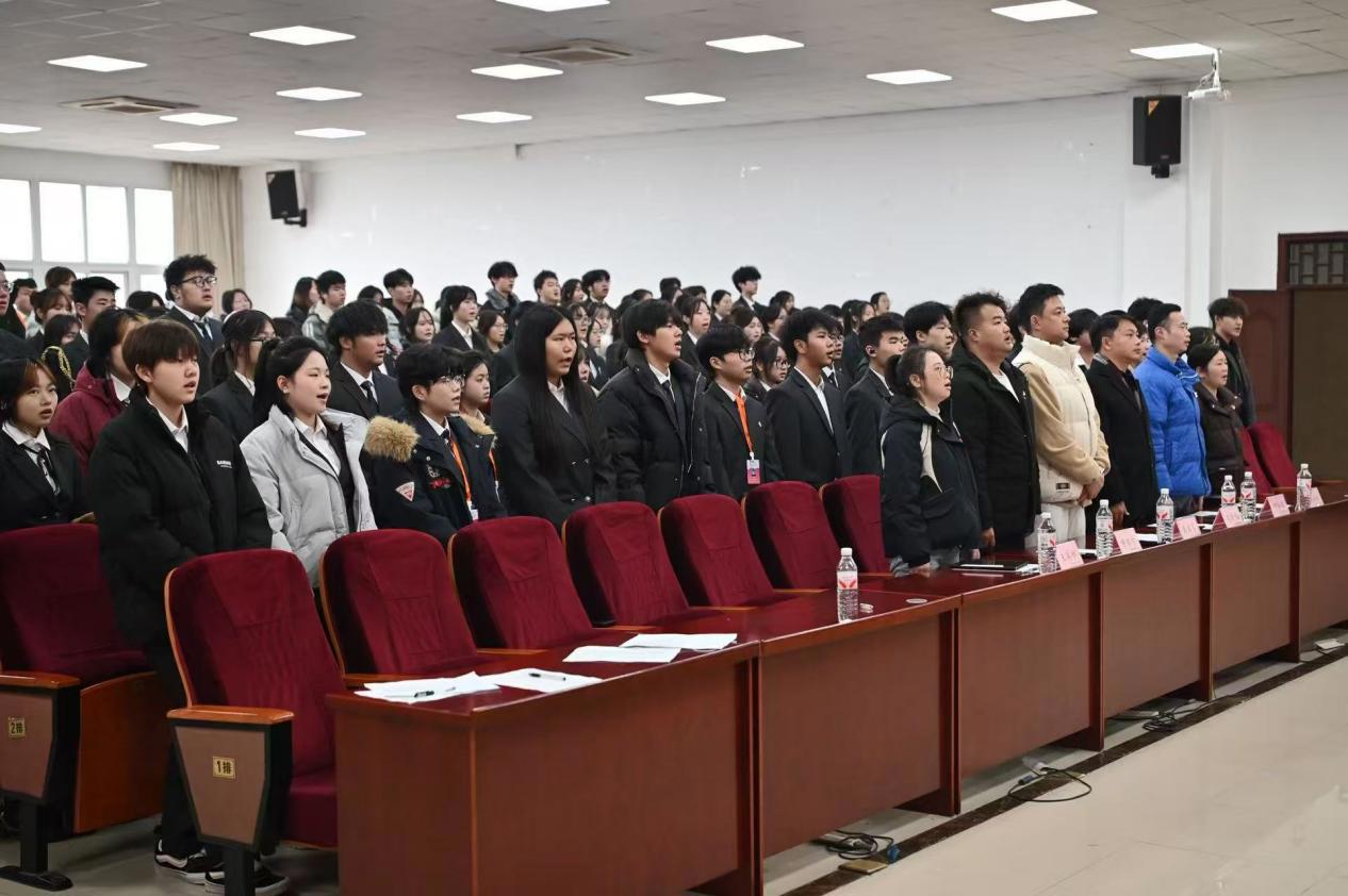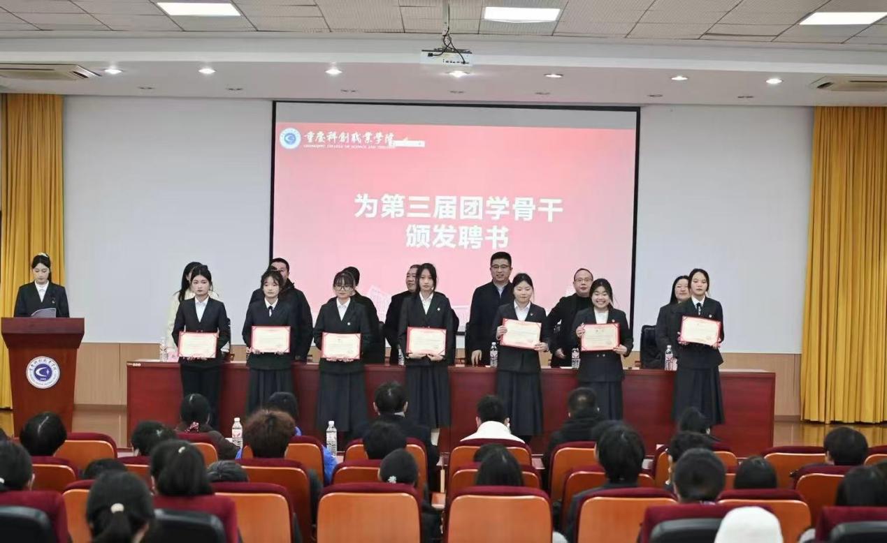 为保障组织工作的连续性与创新性,凝聚青年力量, 12月17日下午,我院第四届团总支、学生会换届暨总结表彰大会在理工楼807学术报告厅顺利举行,我校团委书记马堃、校学生工作部副部长王艳容、我院院长杜德银、党支部书记赵伟、副院长张陵、团总支书记赵敏、团总支指导老师钟小路、全体辅导员和全体团学骨干出席本次大会。本次大会由办公室邓惠芩主持。