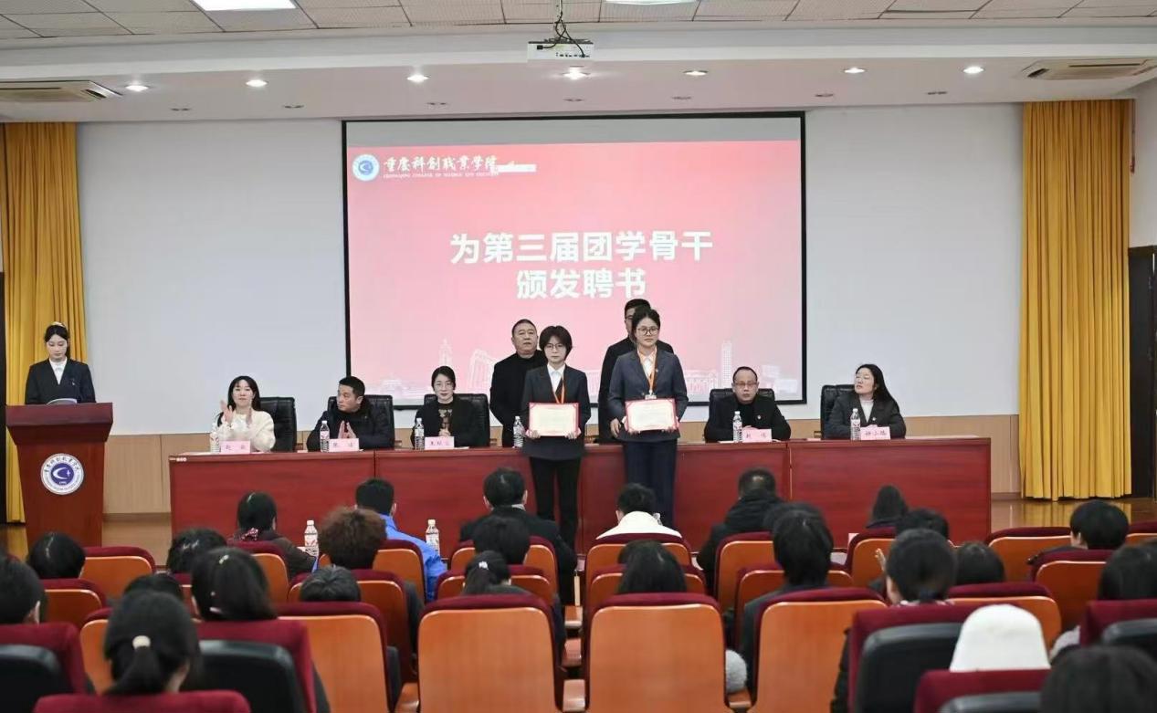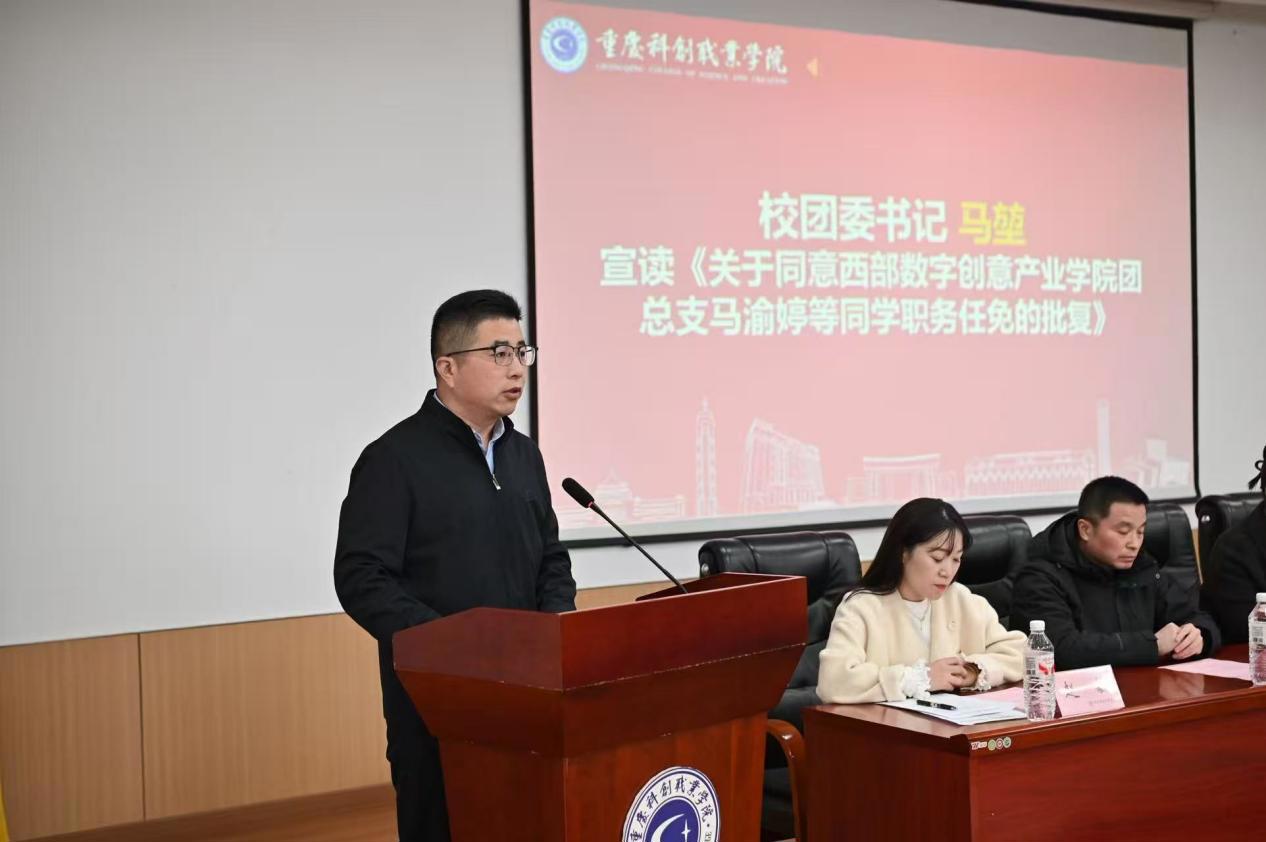 大会第四项议程,校团委书记 马堃 宣读《关于同意西部数字创意产业学院团总支马渝婷等同学职务任免的批复》
