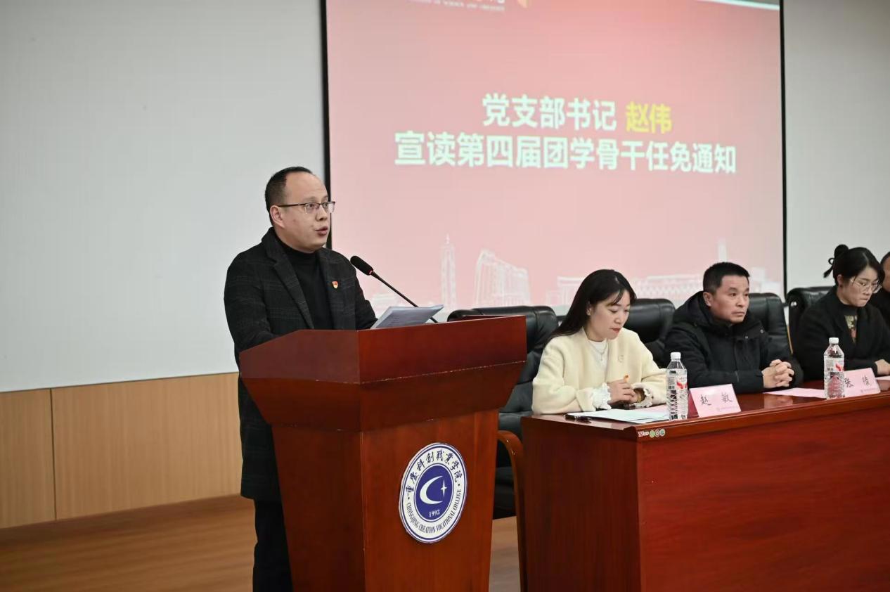 大会第三项议程,党支部书记 赵伟 宣读第四届团学骨干任免通知