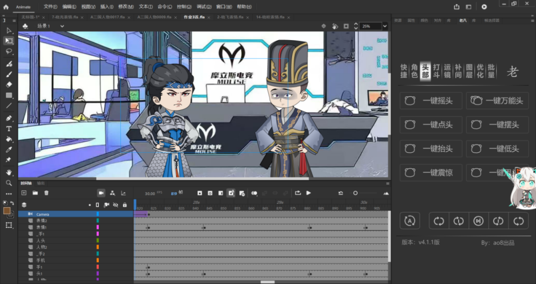 以风格幽默、传播性强为特色的“沙雕”动画项目同样成果显著。通过对产值项目要求拆分,分别针对从前期剧本构思、背景人物搭建、AI文生图、场景拆分,到中期动画制作、到后期配音剪辑产出进行全方位培养,参加工作室的同学们从零基础蜕变为可独立产出完整剧集的Animate动画人。目前累积产出“拯救者电竞酒店——搞笑日常”108集,“摩立斯电竞馆——三国篇”67集,项目还在持续进行中,预期到九月底工作室的全体师生总产出在380-400集左右。
