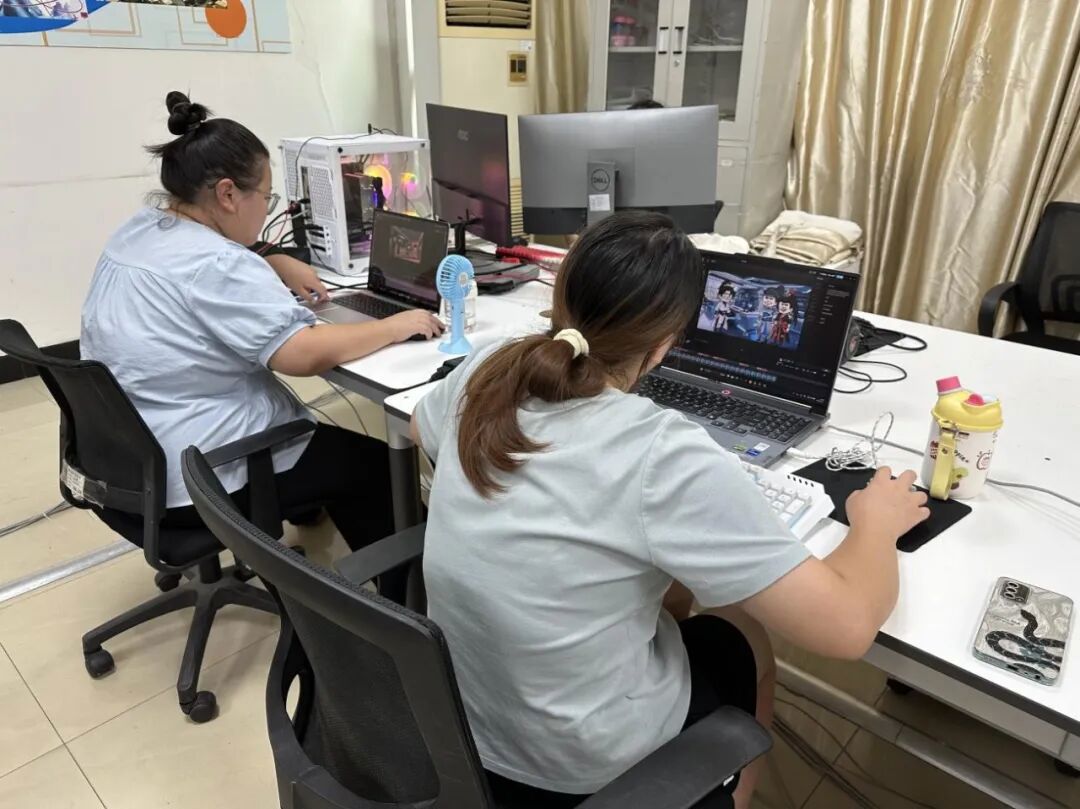 炎炎夏日,当多数师生享受假期时光时,西部数字创意产业学院的产值工作室内却一派繁忙景象。为确保重点产值项目按时交付,学院师生主动放弃休假,组成攻坚团队,围绕动态漫、沙雕动画、跨境电商报价三大项目持续奋战,用实干与担当交出了一份亮眼的暑期答卷。