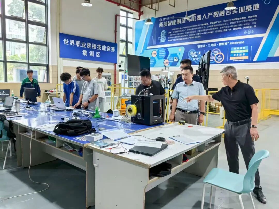 考察团先后走进智能制造与机器人学院实训工厂、人工智能与大数据学院实训基地、西部数字创意产业学院实训基地,分别听取各学院负责人关于实训设备配置、实践教学模式、产业需求对接及学生成果的介绍。