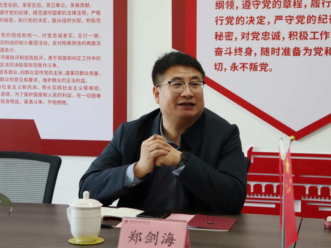 郑剑海总经理介绍了北京杰创永恒科技有限公司的基本情况,重点分享了公司在“智能硬件装调员”职业认证、现场工程师培训、实验实训基地共建等方面与多所高校合作的成功经验。他表示,公司高度重视与我校的合作,期待通过校企协同育人模式,在专业建设、技能竞赛、人才培养等多个维度实现资源共享与优势互补。