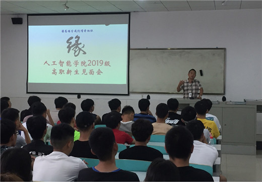为了让2019级五年一贯制新生更好地了解自己所学专业,提高学生对专业知识学习的兴趣,尽快适应大学生活,9月1日下午,我校人工智能学院在理工楼6楼举办了新生专业宣讲暨新生见面会,学院领导、各专业负责人及企业专家出席了本次会议。