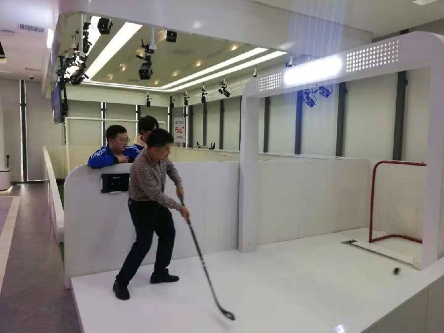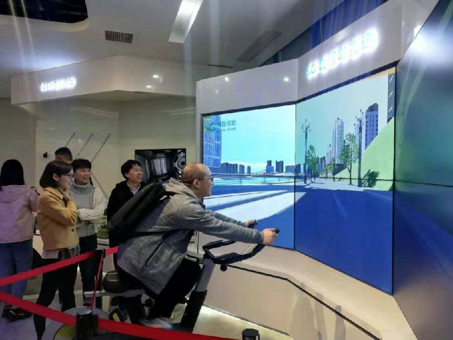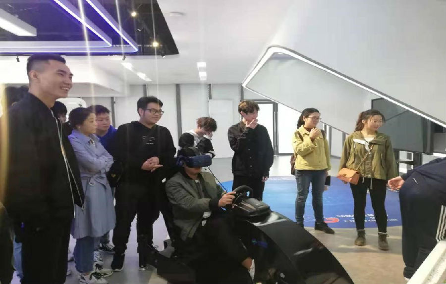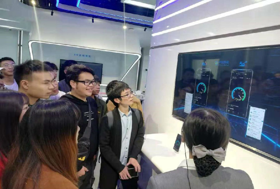 在讲解员的引领下,师生们先后参观了智慧公园、5G馆、艺趣馆和云顶集市,并体验了多人体感游戏、人脸识别自助储物柜、人脸识别游览轨迹、5G手机测速体验、5G机器臂挡冰球、沉浸式自行车、VR虚拟驾驶、AR远程修车、AR穿衣镜、人脸支付等智慧项目。