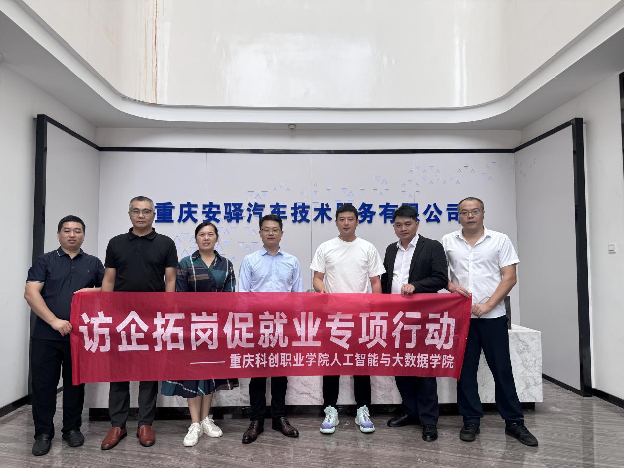 为深化校企合作,精准对接企业需求,推动人才培养与产业需求深度融合,2025年10月13日,人工智能与大数据学院院长助理何杰带领人工智能教研室主任钟芙蓉以及大数据技术和智能网联汽车专业教师一行赴重庆安驿汽车技术服务有限公司开展“访企拓岗促就业”专项调研活动。双方围绕产教融合、校企合作、项目引进、学生实习就业等议题展开深入交流,共同探索产教融合新路径。