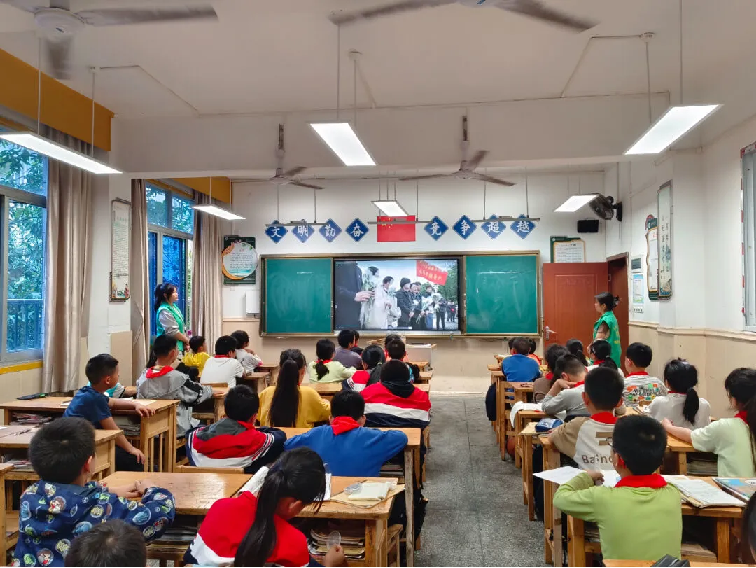 接下来,志愿者和小朋友们一起观看关于英雄先烈事迹的视频。大家专心致志,深刻认识到革命先烈为国家独立和民族解放做出的巨大牺牲,并为视频中展现出的爱国精神所感染。