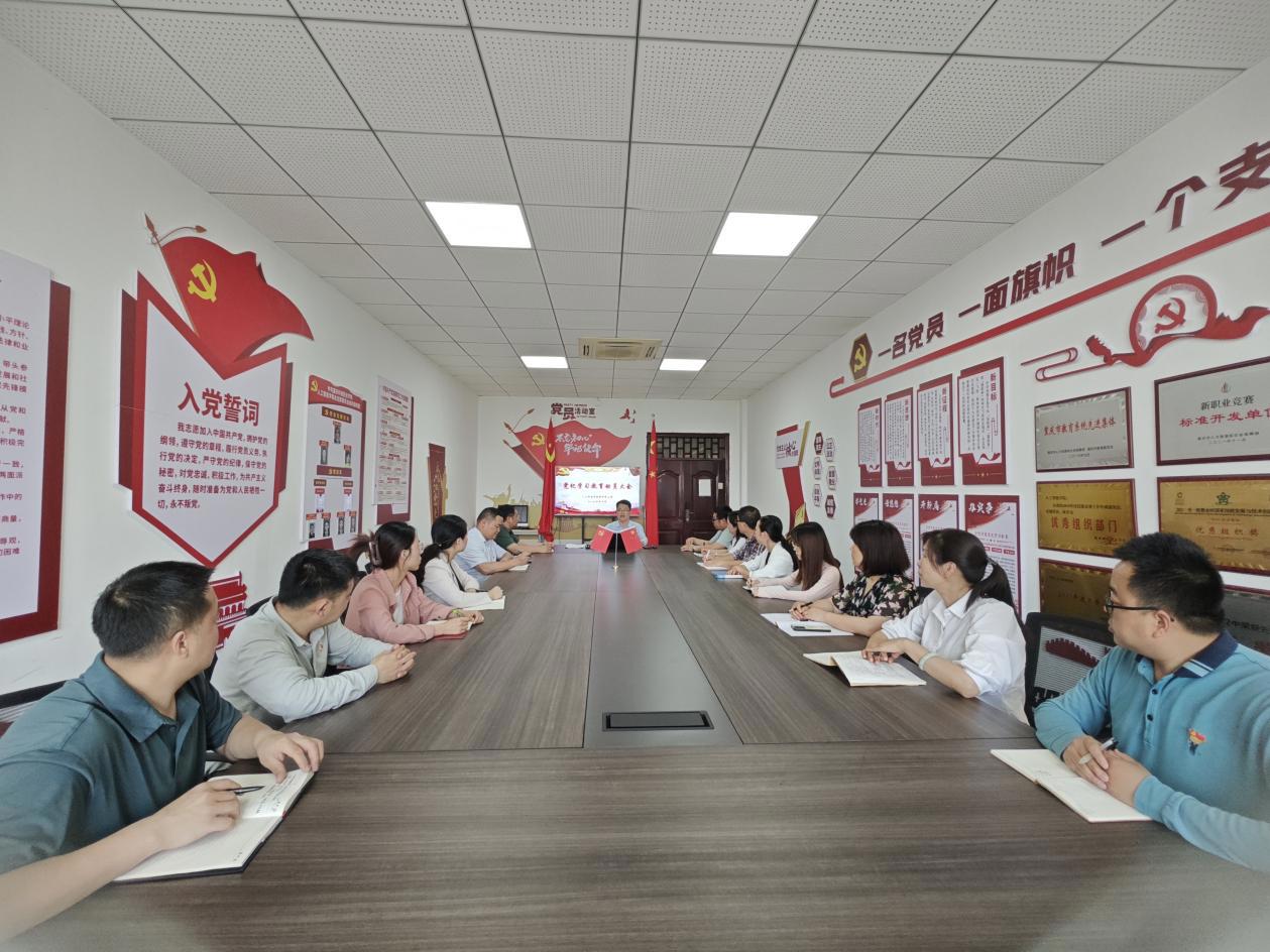 2024年4月28日下午,人工智能学院教师党支部书记何杰主持召开教师党支部党纪学习教育动员部署会,传达《中共重庆市委教育工作委员会办公室印发关于在重庆市民办高校开展党纪学习教育实施方案的通知》(渝教工委办发〔2024〕5号)精神和学校党委工作部署,研究支部党纪学习教育工作。