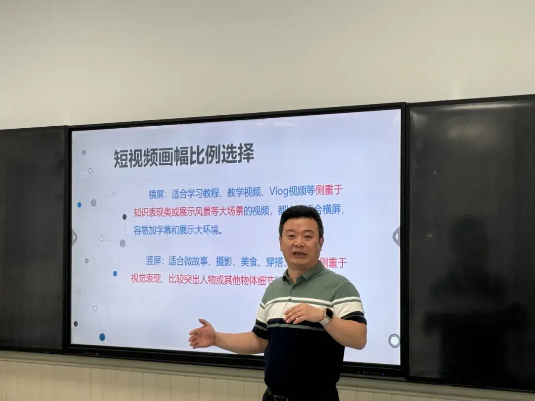 在培训视频剪辑过程中,秦老师特别强调了几个部分:添加字幕和调整音频、添加转场与音效、花字、片头与调色对于视频剪辑的重要性,建议同学们在学习之初,可以提前撰写详细的脚本,具体到镜头运镜和拍摄角度等,以便于收集视频素材和进行后续剪辑工作。此外,还需根据不同视频风格进行相应设计,并以案例给同学们展示了如何选择视频模板、如果选择横屏和竖屏、如何添加花字和音效等。
