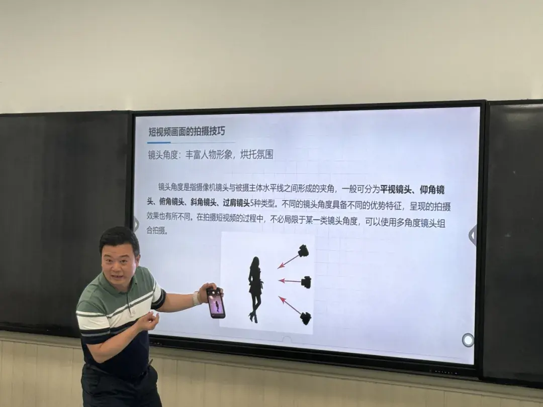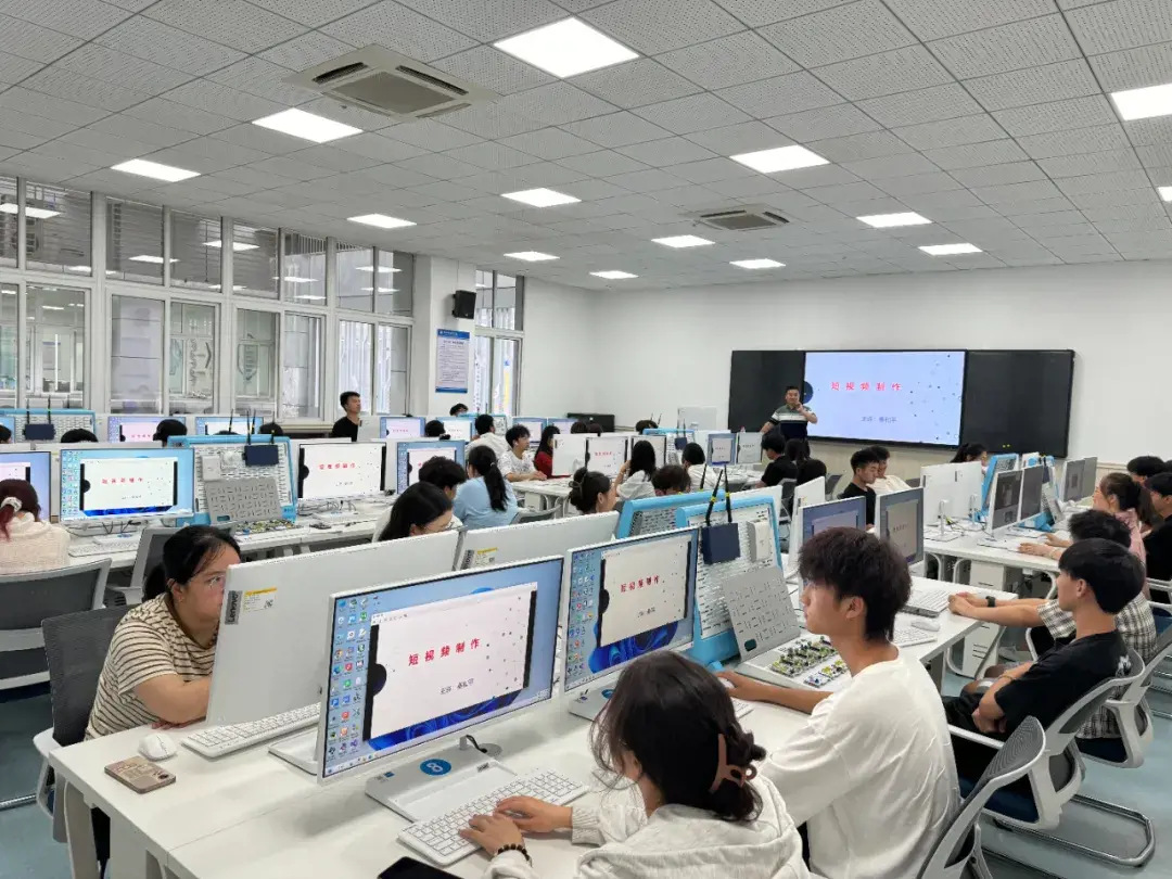 培训开始,秦老师向同学们介绍了拍摄的基本构图、选择拍摄环境以及拍摄常用功能,针对不同的场景和光线条件,讲解了如何选择合适的拍摄角度、光圈和焦距,让同学们更深入了解相机摄影技巧。接下来,秦老师还为同学们介绍了几种常用的剪辑软件,并以“剪映”视频编辑软件为例,进行实操现场演示。