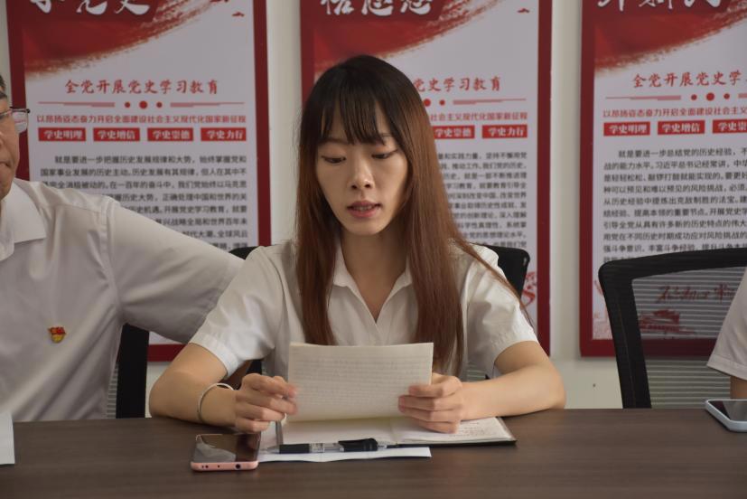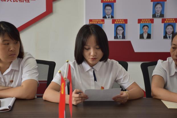 预备党员曾立莎宣读转正申请书并汇报了一年的预备期间的表现及不足。