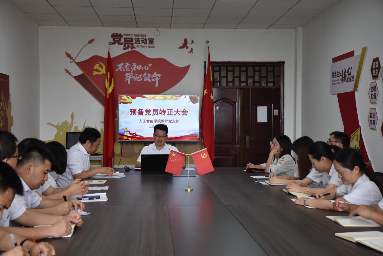 2024年6月12日下午,人工智能学院教师党支部在理工楼703会议室召开2024年度预备党员转正党员大会,讨论预备党员曾立莎同志的转正申请。本次会议由党支部书记何杰主持,支部全体党员参加。