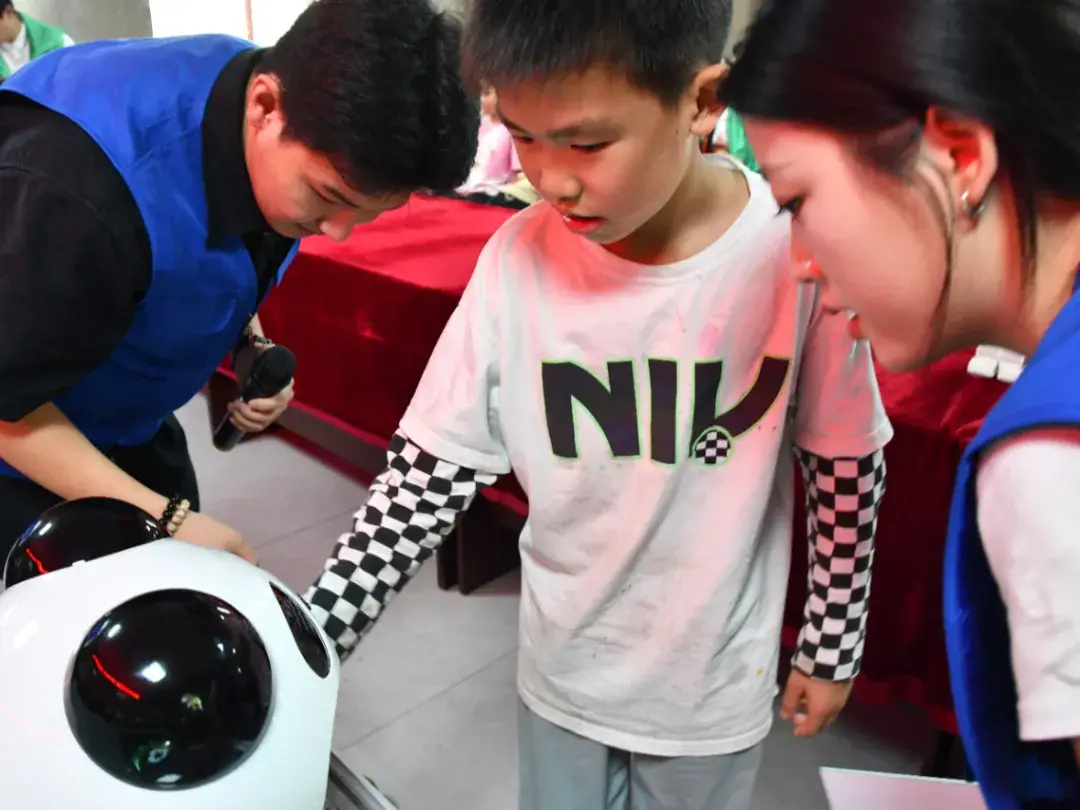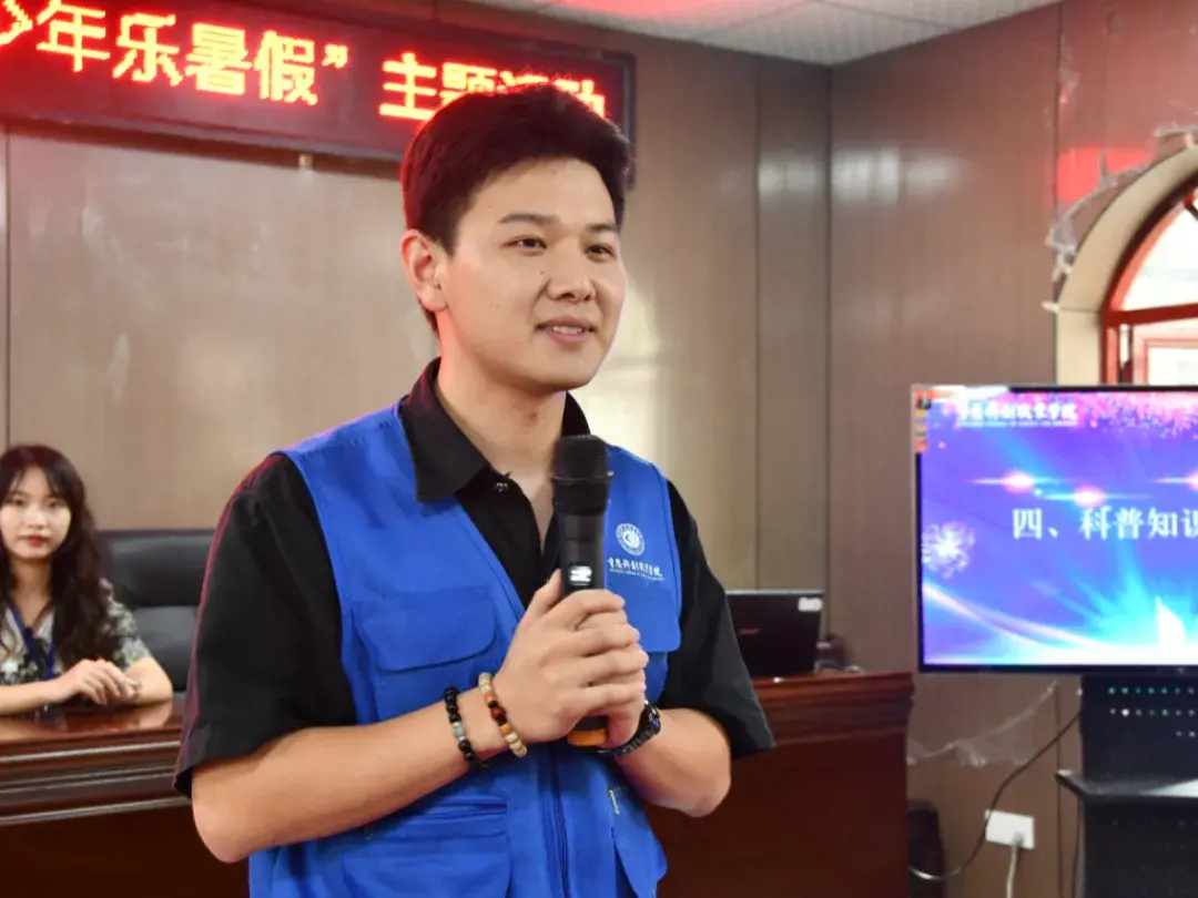 紧接着由人工智能学院实训基地彭豪老师和智能制造学院董路同学给大家带来科普知识宣讲,深入浅出的讲解犹如一把智慧的钥匙,开启了乡村居民和小朋友对科技世界的认知之门。专业的讲解让高深的科技知识变得通俗易懂,为乡村播下了科技启蒙的种子。