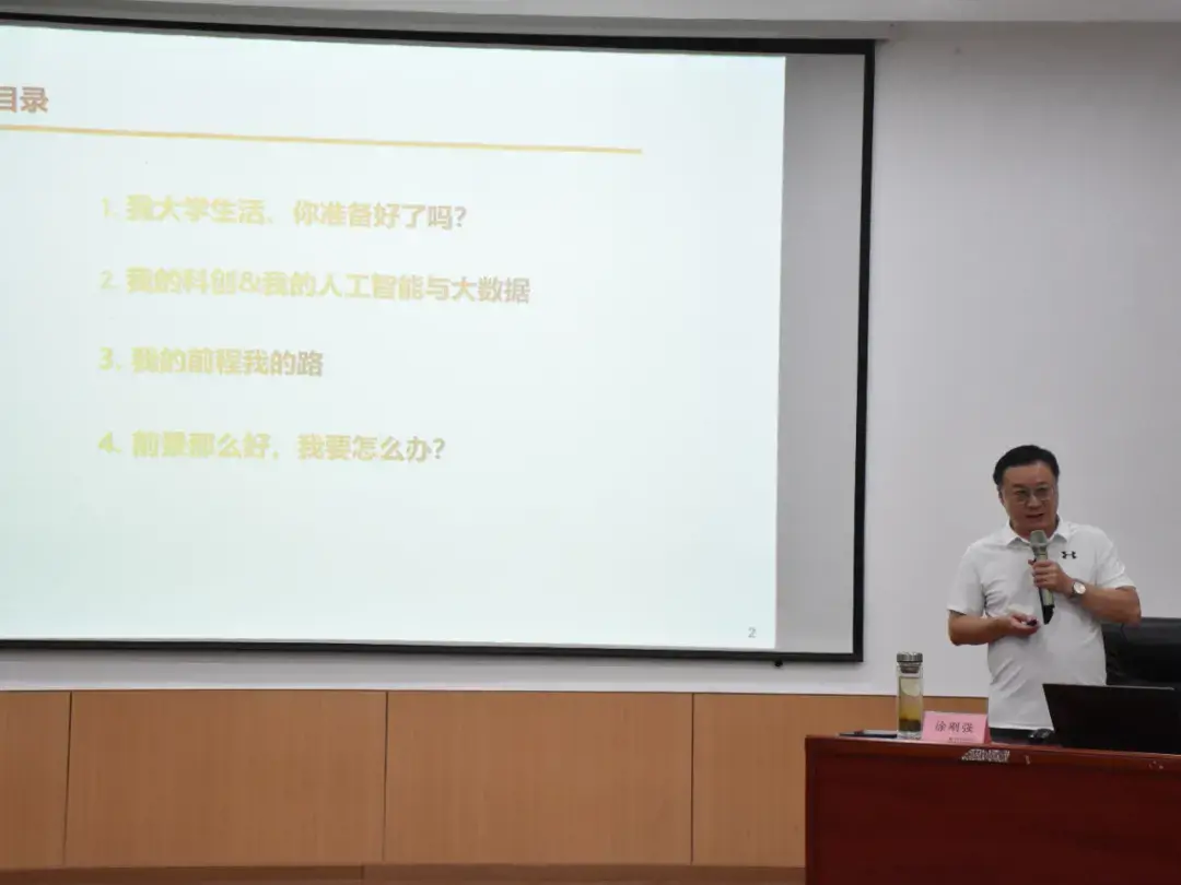 此外,徐教授还特别强调了大数据专业的重要性。他指出,人工智能与大数据往往需要多学科交叉合作,希望同学们能够相互支持,共同进步。他鼓励新生们积极参与各类学术活动和社团组织,拓宽视野,提升综合素质。