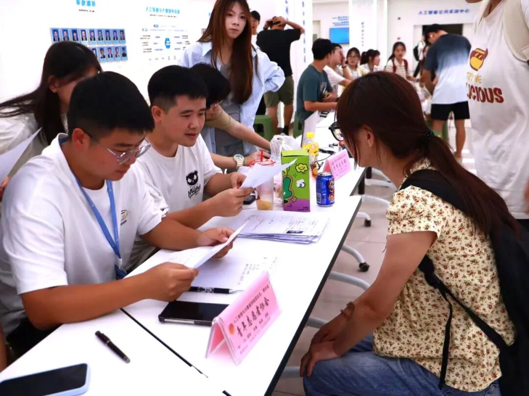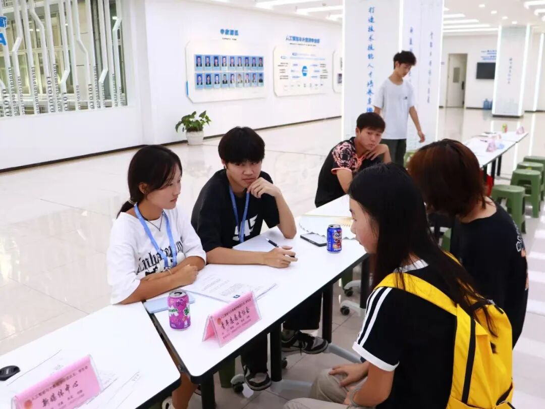 9月15日至16日,学院团总支、学生会在理工楼大厅举办线下招新面试。学生干部们热情接待每一位前来咨询的同学:为对“新媒体运营”感兴趣的同学演示公众号排版与视频剪辑技巧,向希望参与“校园文化活动”的同学介绍迎新晚会、学科竞赛等活动的组织流程,为纠结“选择哪个部门”的同学提供个性化建议。