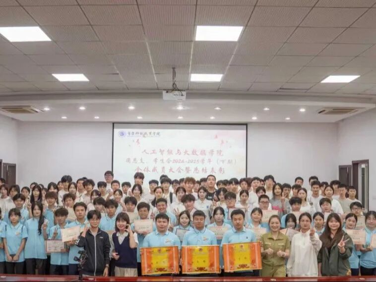 为系统总结工作成效、表彰先进树立典范、凝聚学生骨干力量、擘画发展新蓝图,9月24日,人工智能与大数据学院于理工楼807学术报告厅召开团总支、学生会全体成员大会暨总结表彰。学院党总支书记姜涛、团总支书记陈俞先、团总支指导老师龚源出席大会,全体学生会成员齐聚一堂,共同回顾过往工作、见证优秀荣光、展望未来发展。