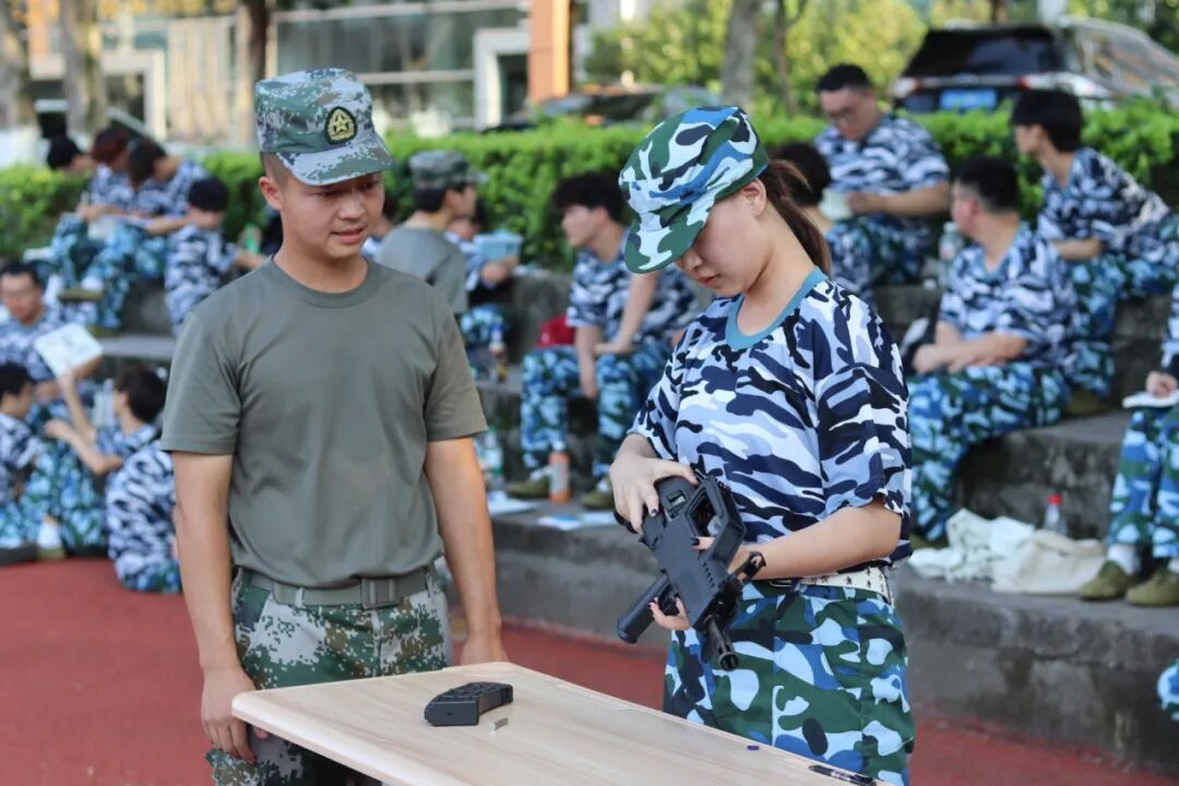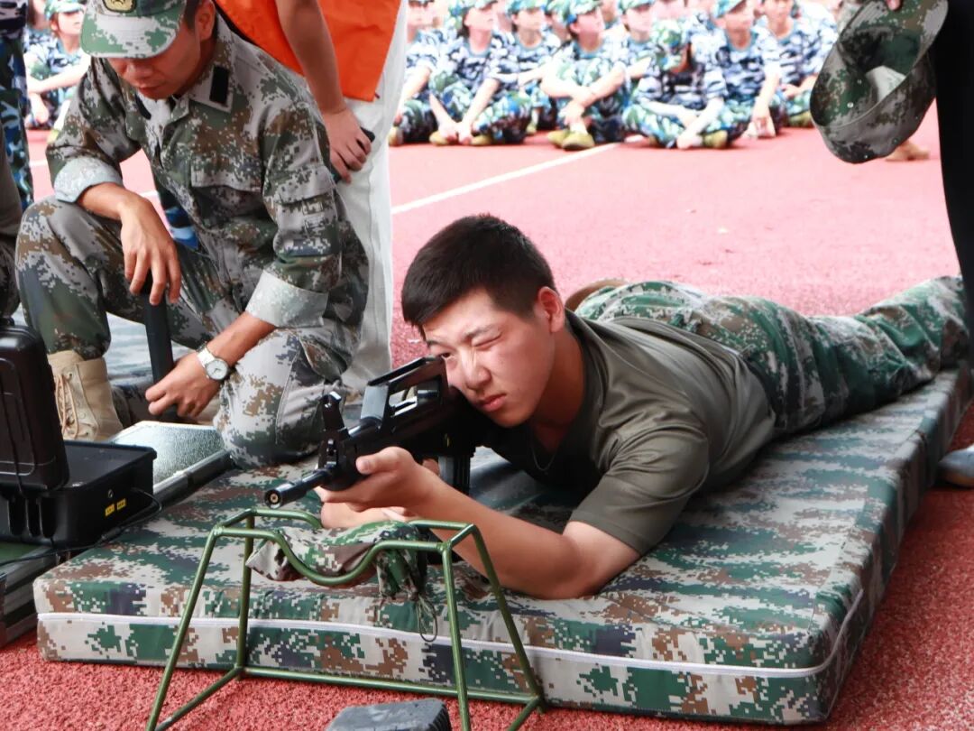 模拟射击科目如期开展,新生们按序排队,眼神满是期待与郑重。在教官细致指导下,他们逐一握起 95 式自动步枪,从规范持枪姿势、掌握瞄准要领,到协调呼吸与动作,每一步都专注揣摩。扣下扳机的瞬间,眼神骤然锐利,在沉浸式体验中触摸枪械质感,深刻感悟军人的责任与担当,心中热血愈发滚烫。