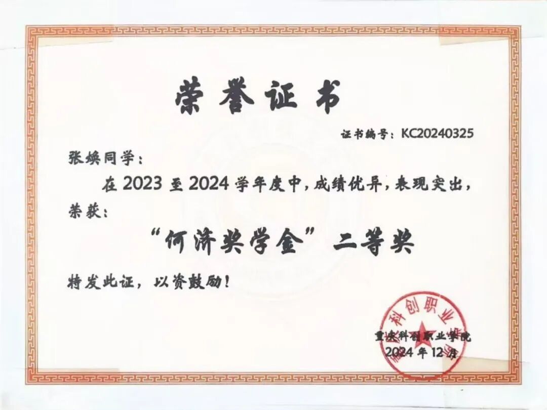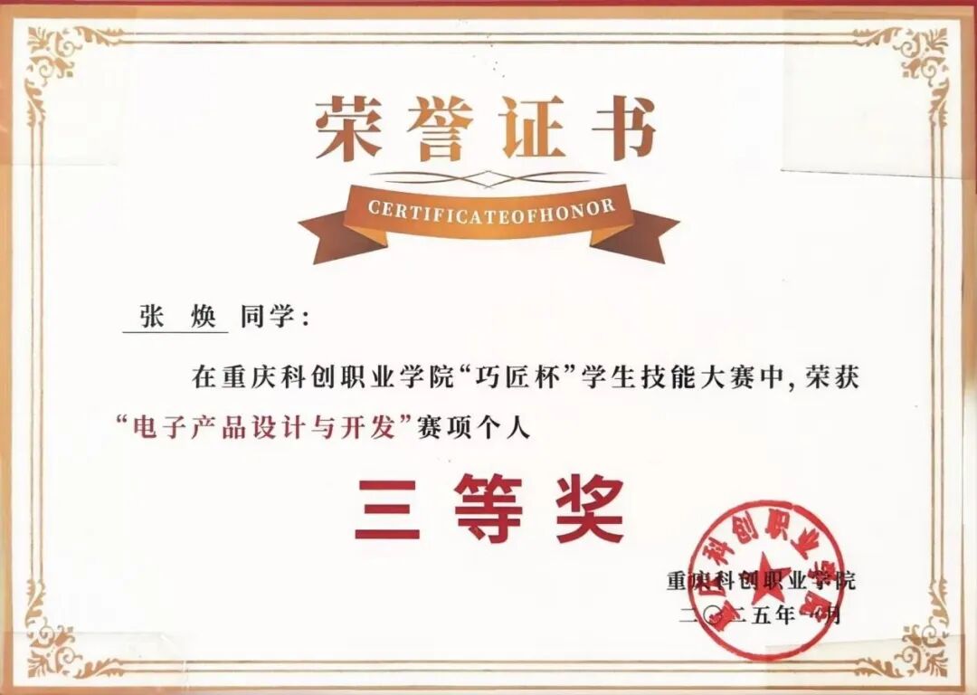 2025年1月获科创职业学院“巧匠杯”学生技能大赛三等奖