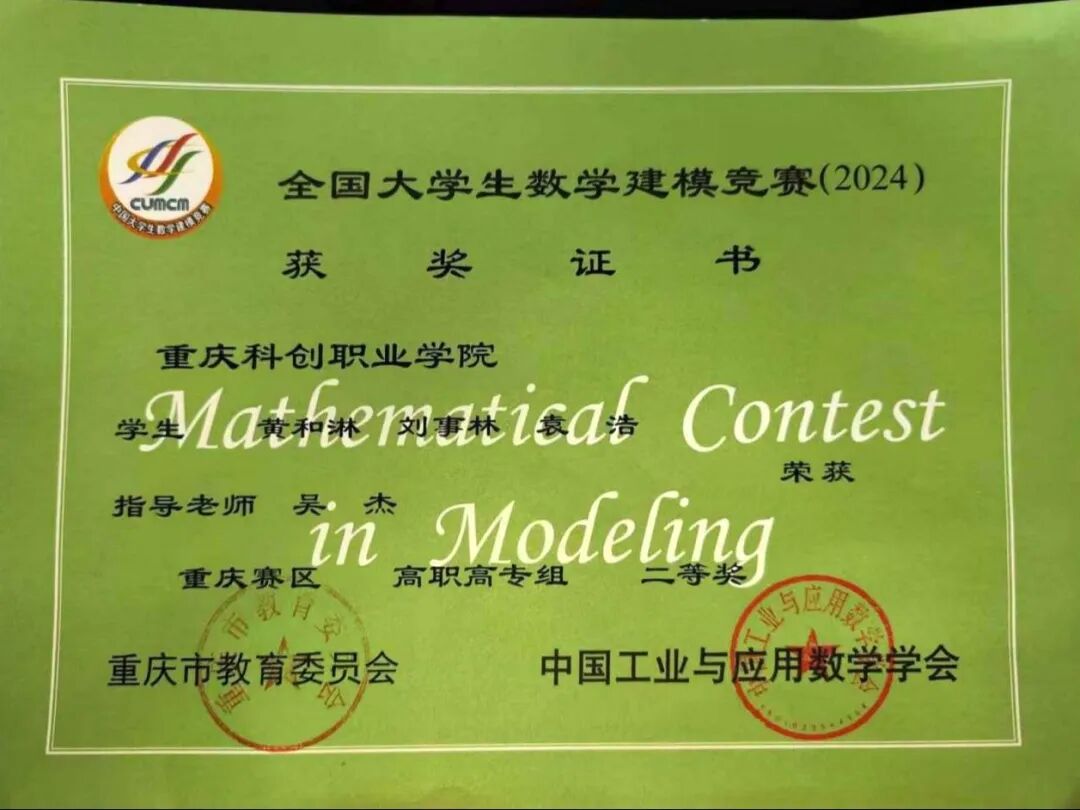 2024年12月获全国大学生数学建模竞赛(2024)重庆赛区高职高专组二等奖
