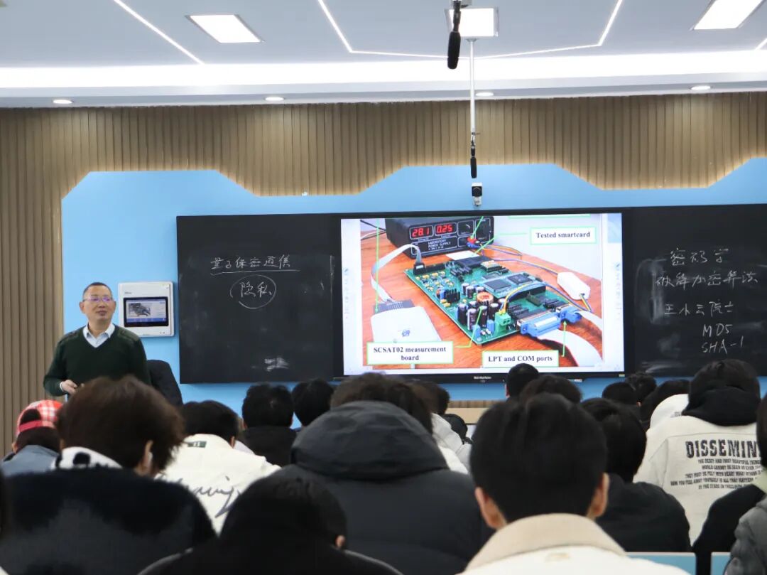 讲座中,姚剑波教授围绕主题进行系统讲解。他指出,侧信道攻击与传统攻击不同,不针对密码算法的理论弱点,而是捕捉密码设备运行时产生的能量、电磁、缓存及故障输出等物理泄露信息,通过分析密钥相关特征点恢复密钥,对密码系统安全构成严重威胁。