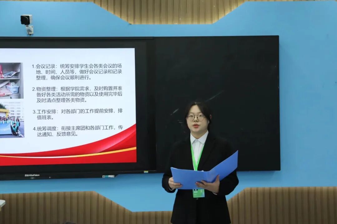 各部门负责人依次登台作工作述职报告,从组织建设、活动开展、师生服务等维度全面复盘学期工作,深入查摆现存问题与短板,并清晰规划下一阶段工作目标与实施路径。