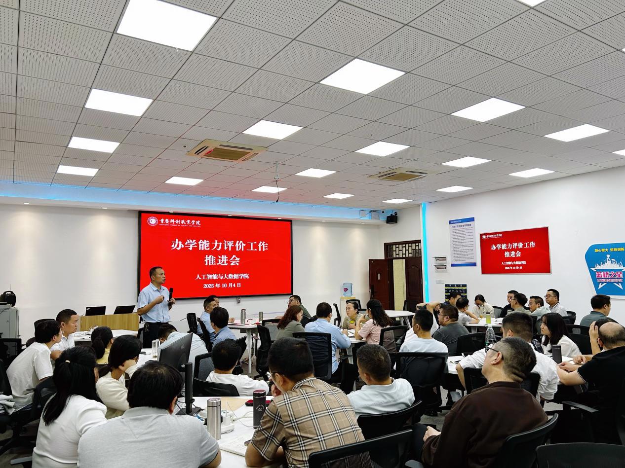 为全面贯彻落实学校办学能力评价工作精神,扎实推进评估工作,人工智能与大数据学院于2025年10月4日上午,在理工楼517组织全院教师召开办学能力评价工作推进会。学校副校长刘鸿飞、学院党总支书记姜涛、常务副院长曹小平、院长助理何杰等出...
