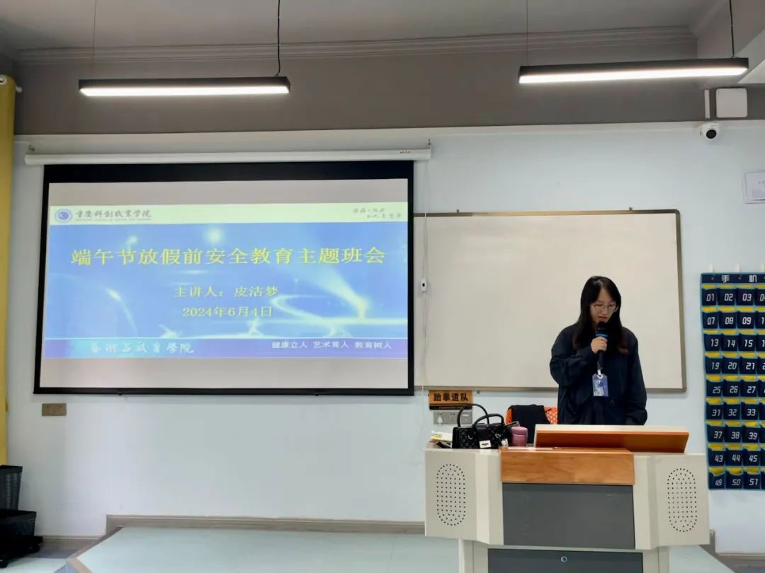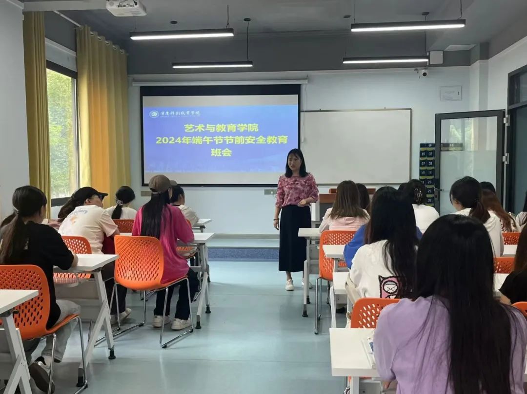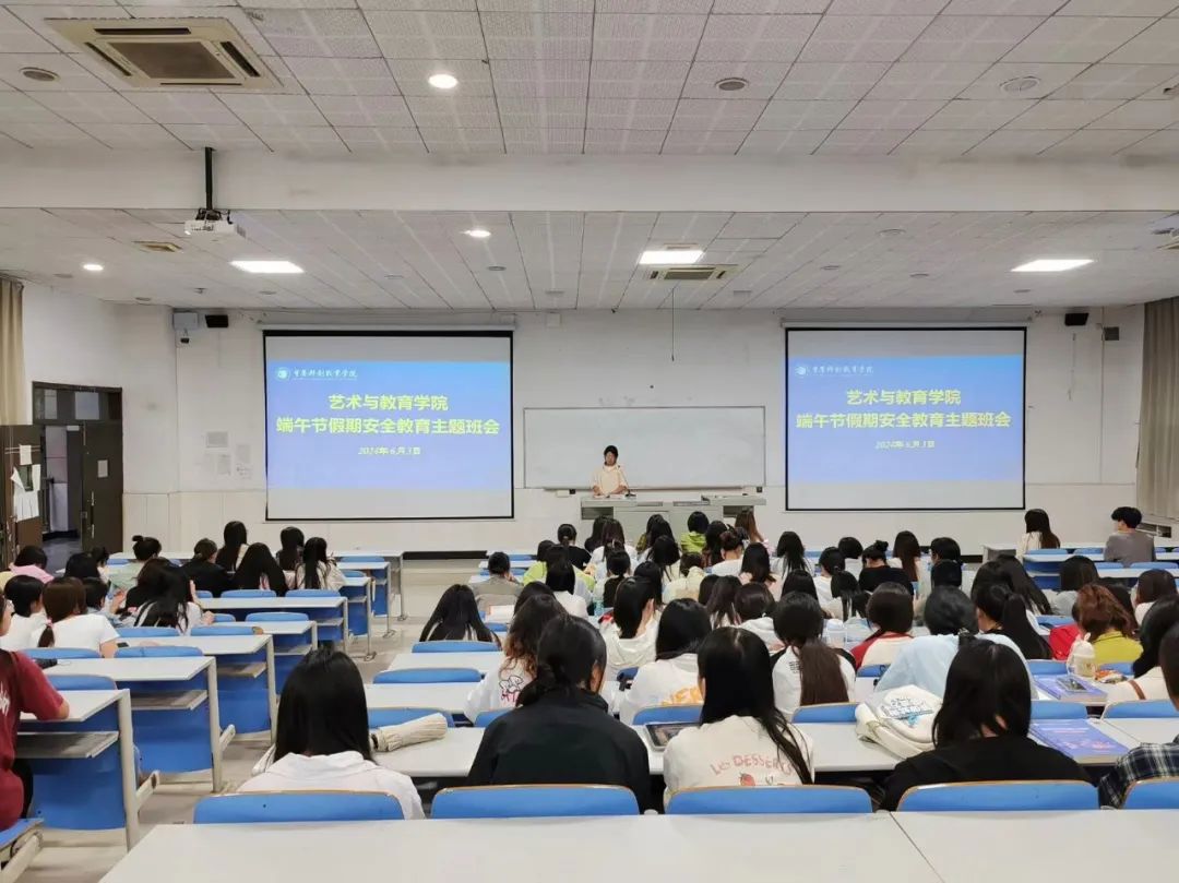 为进一步增强节假期间学生安全教育和管理工作,增强安全意识,使同学们度过一个安康的端午,6月6日,艺术与教育学院在鸿志楼开展了端午假期主题班会。