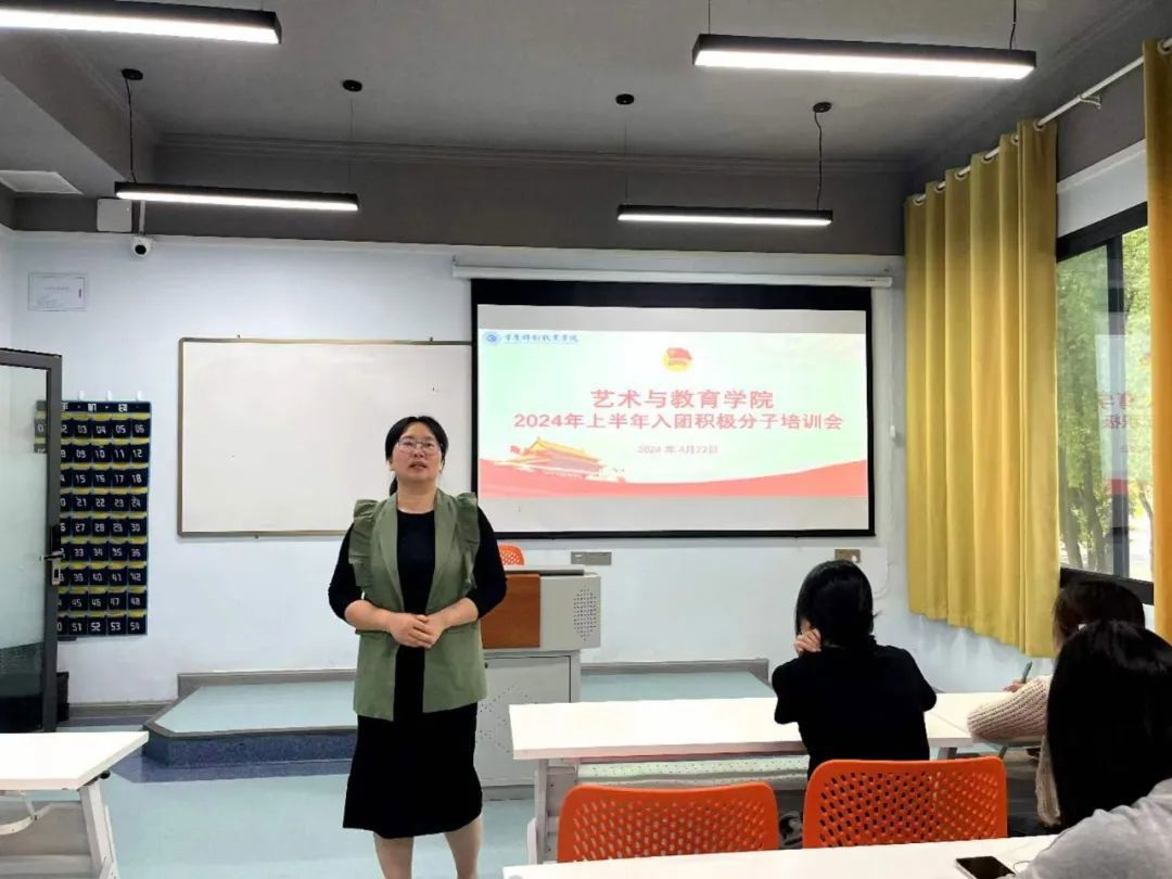 为扎实推进学习贯彻习近平新时代中国特色社会主义思想主题教育,激励广大团员弘扬中华民族伟大精神,4月22日、24日,艺术与教育学院在鸿志楼202教室组织开展新发展团员主题团课学习,由团总支书记钟霞为我们授课。