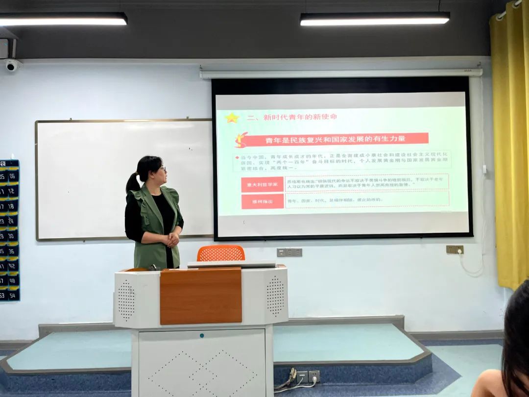 钟霞围绕共青团的使命及性质、“三个必须”向同学们进行了详细讲解,引导大家不忘初心、牢记使命,争取做合格共青团员,做优秀的党的助手和后备军。肖艳在团课上对同学们讲述了自己的一些经历以及自己为什么进学生会,她鼓励同学们要多参加一些比赛,争取在这个快速发展的时代抓住良好的发展机遇,不断提升自己,牢牢把握时代给予的接力棒,以行动和担当诠释青春,坚定不移地在中国式现代化新征程上展现青春新作为。