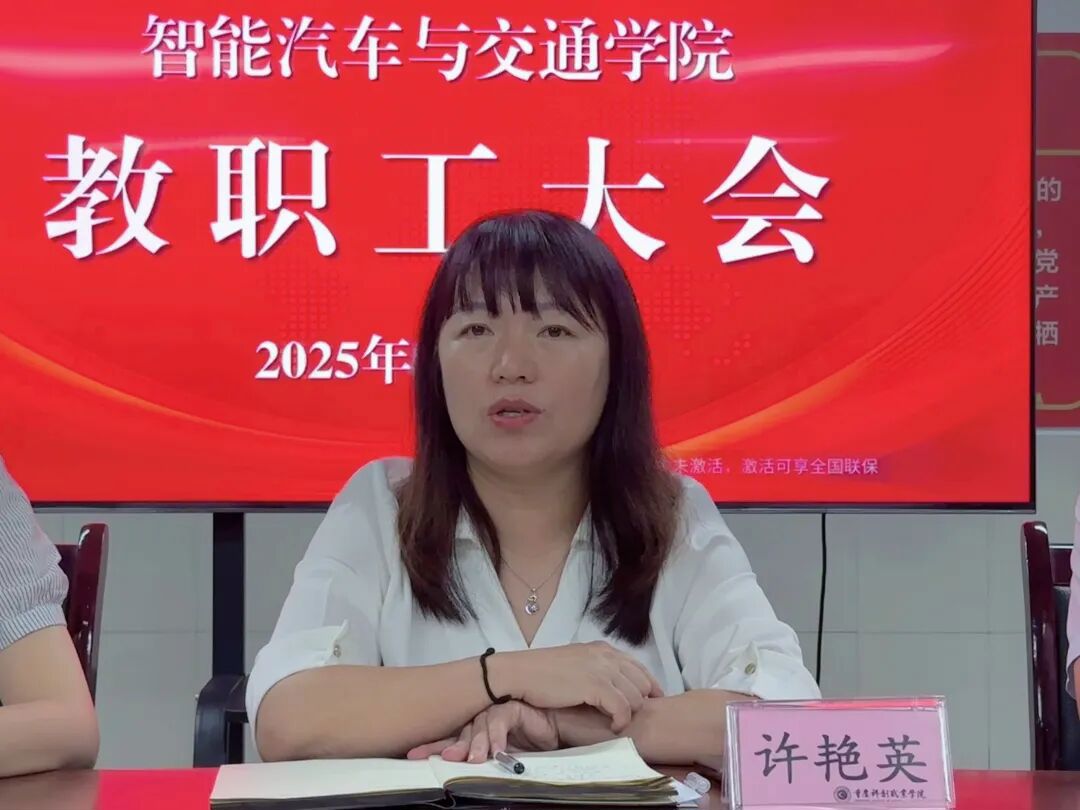 9月3日下午,智能汽车与交通学院在通慧楼909会议室召开2025年秋季学期全体教职工大会。校党委副书记、副校长钟代军莅临现场,院长许艳英主持会议。