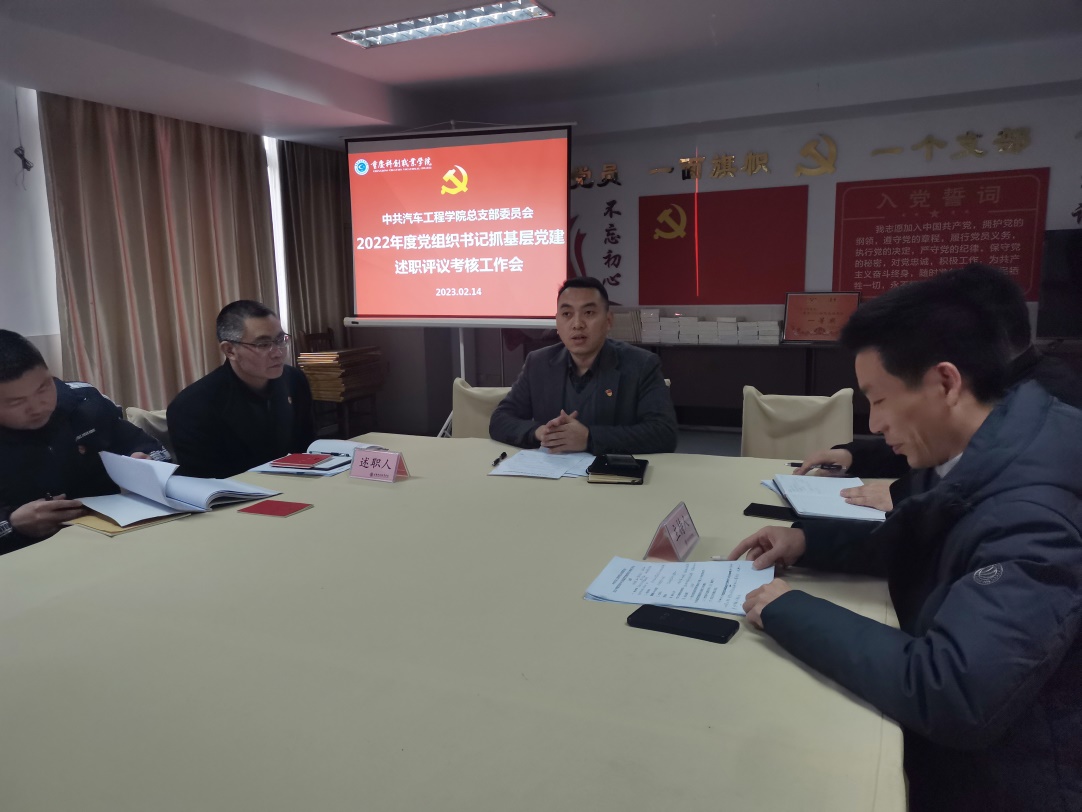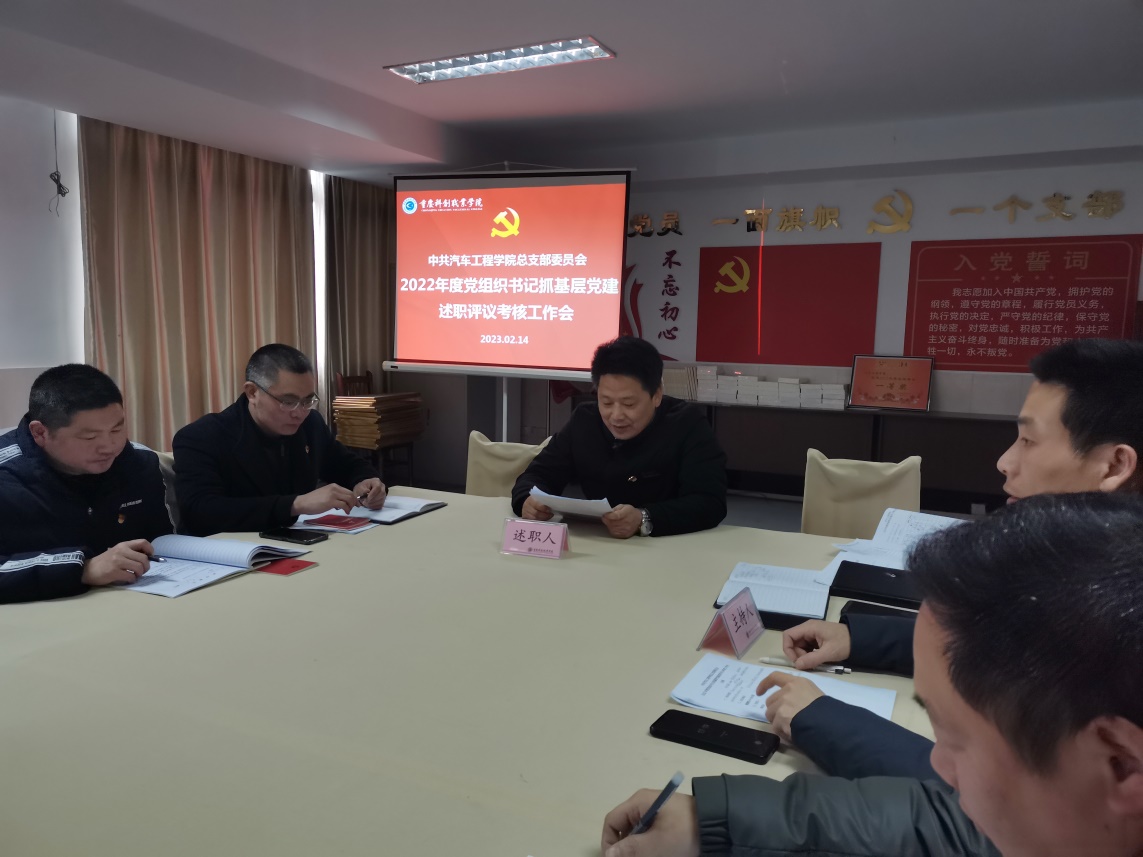 2023年2月14日下午,汽车工程学院党总支在通慧楼909会议室召开全体党员大会,进行2022年度党支部书记抓基层党建述职评议考核。总支组织委员陈再洪同志主持会议。