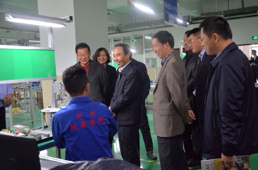 重庆市教委副主任邓睿在学校领导陪同下参观学校教学实训场地