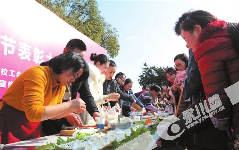 日前,重庆科创职业学院在学校科技广场上举办了教师夫妻包饺子比赛。比赛现场,9张桌子一字排开,桌面上摆满了包饺子所需的擀面杖、饺子皮、肉馅等。9对参赛教师夫妇忙碌地揉面、剁馅、擀皮、包饺子……分工合作,配合默契,旁边观战的师生纷纷鼓劲加油,整个比赛竞争激烈又充满欢声笑语。